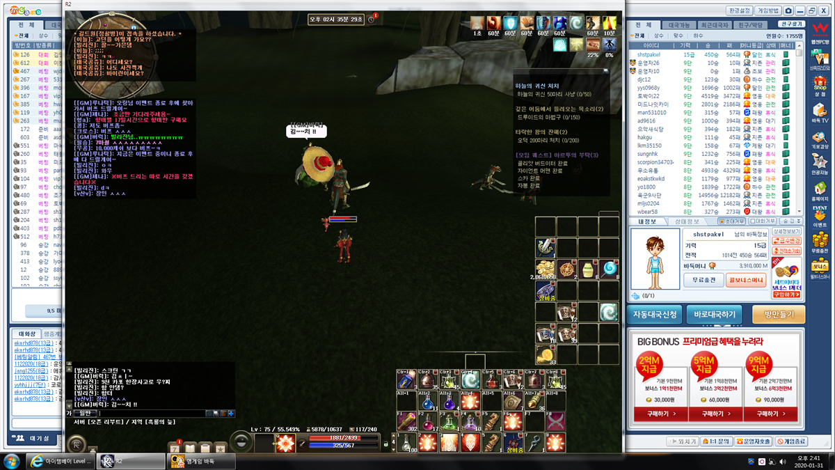 ㅋㅋ 분노이프를 무적걸어놨는데 잡힐거같으니까 서버팅시킨...