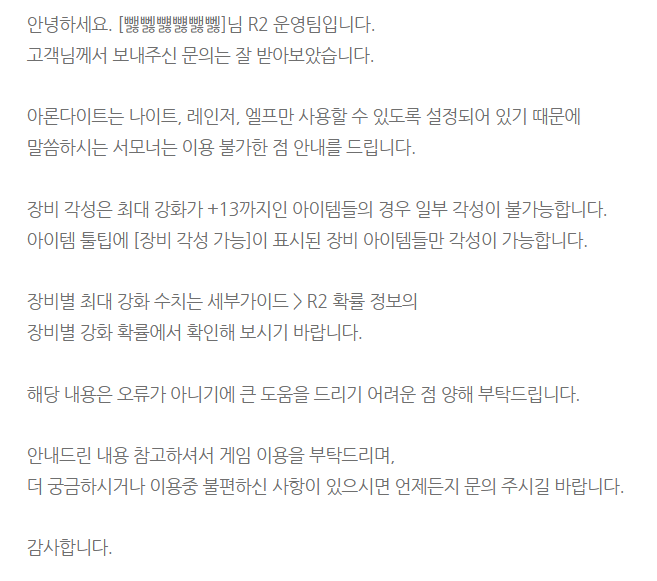 13까지 강화 템은 장비각성 안된다네요 웹젠 답변 입니다. 확인하세요~