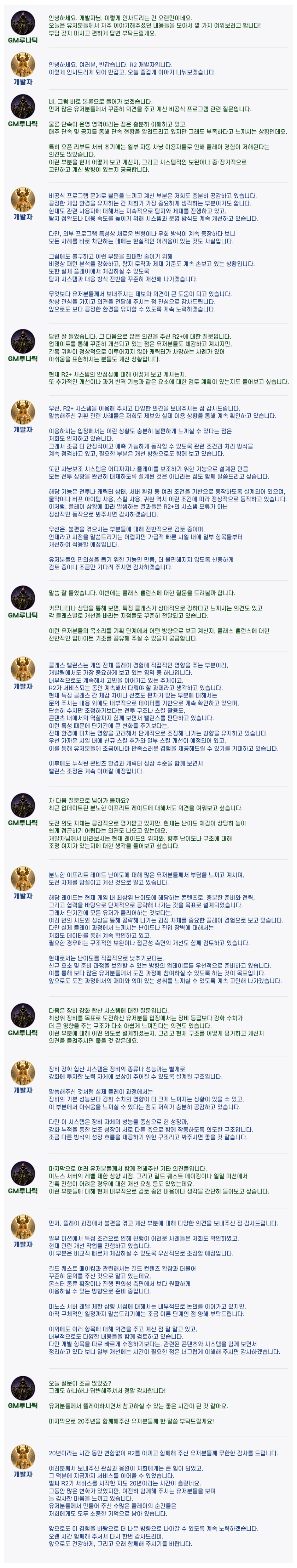 지금까지 R2 개발자님과 함께 유저분들의 다양한 의견에 대해 이야기를 나눠보았는데요.