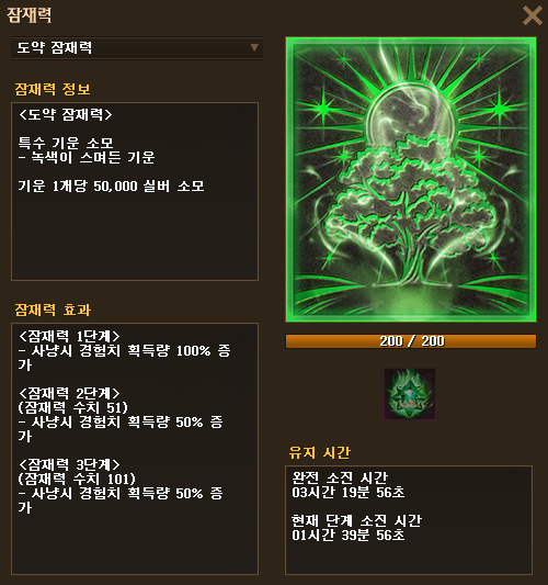 사냥 시 경험치 획득량이 증가하는 효과를 얻을 수 있어요.