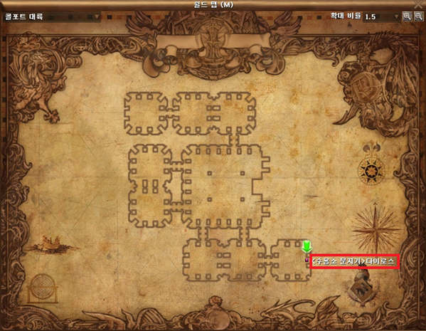 길드 던전 [암흑 사제 사원 수용소]는 암흑 사제 사원 2층 길드 던전 입구에 위치한
