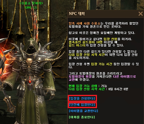 - 길드 던전 [암흑 사제 사원 수용소] 입장 조건