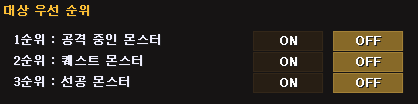 ※ 1~4순위 모두 OFF 상태일 경우, 가장 가까운 대상을 공격합니다.