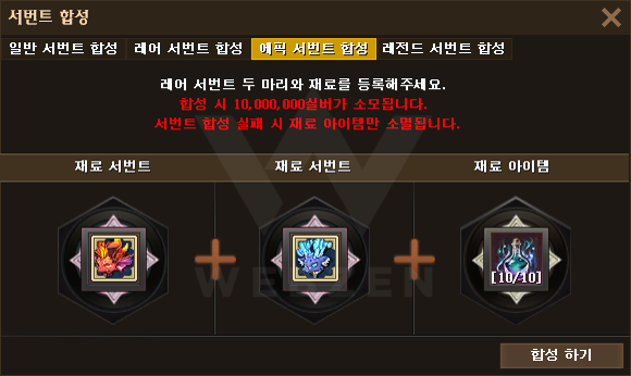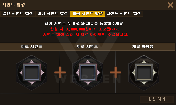 - 에픽 서번트 합성은 실패할 수 있으며, 실패 시 합성에 소모한 신비한 성장의 비약과 실버만 소멸됩니다.