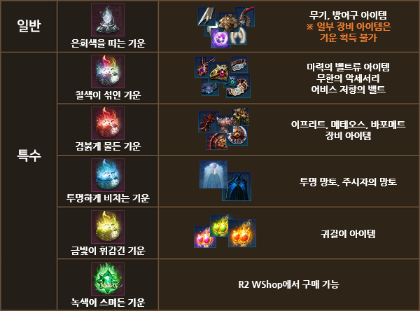 ※ 금빛이 휘감긴 기운 관련 [유료 확률형 아이템 - 확률 세부 정보 바로가기]
