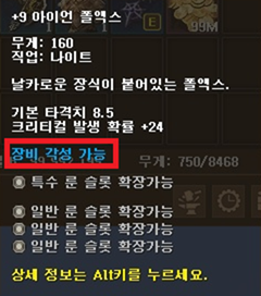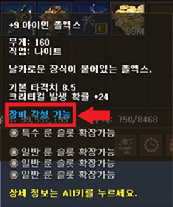 장비 툴팁에 [장비 각성 가능] 문구를 꼭 확인하시기 바랍니다.