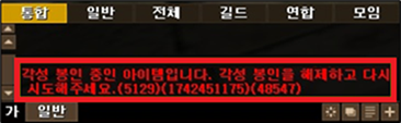 <각성 봉인된 아이템 장착 시 출력되는 오류 메시지>