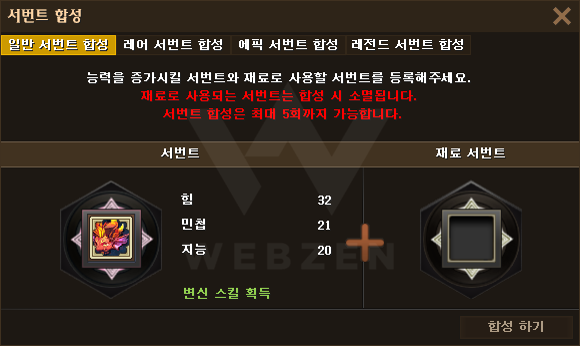 ※ 서번트 합성은 4차 서번트만 가능합니다.