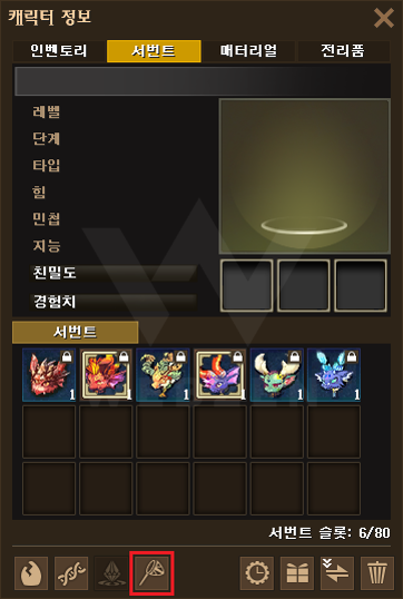 채집을 진행할 서번트를 인벤토리에서 마우스 우클릭하여 등록합니다.