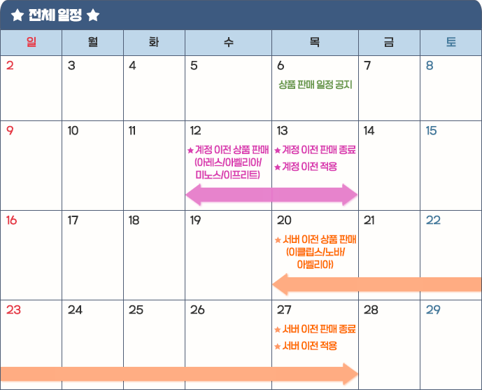 ▶ 대상서버: 일반서버 (이클립스, 노바) / 특화서버 (아벨리아)