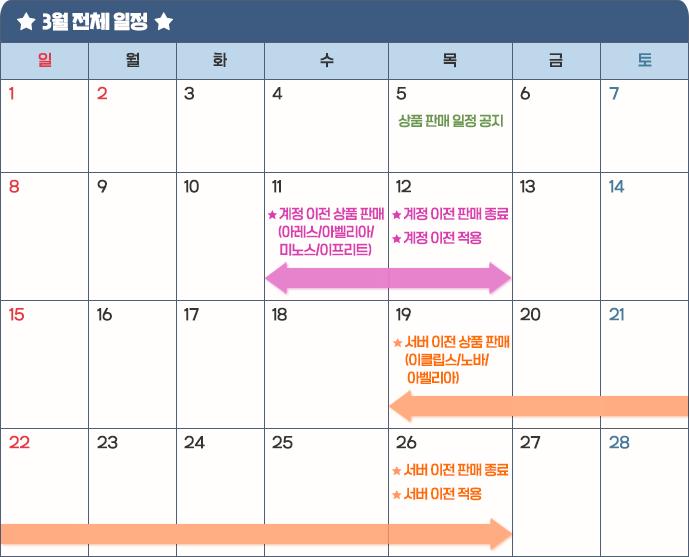 ▶ 판매일시: 3월 19일(목) 점검 후 ~ 3월 26일(목) 점검 전